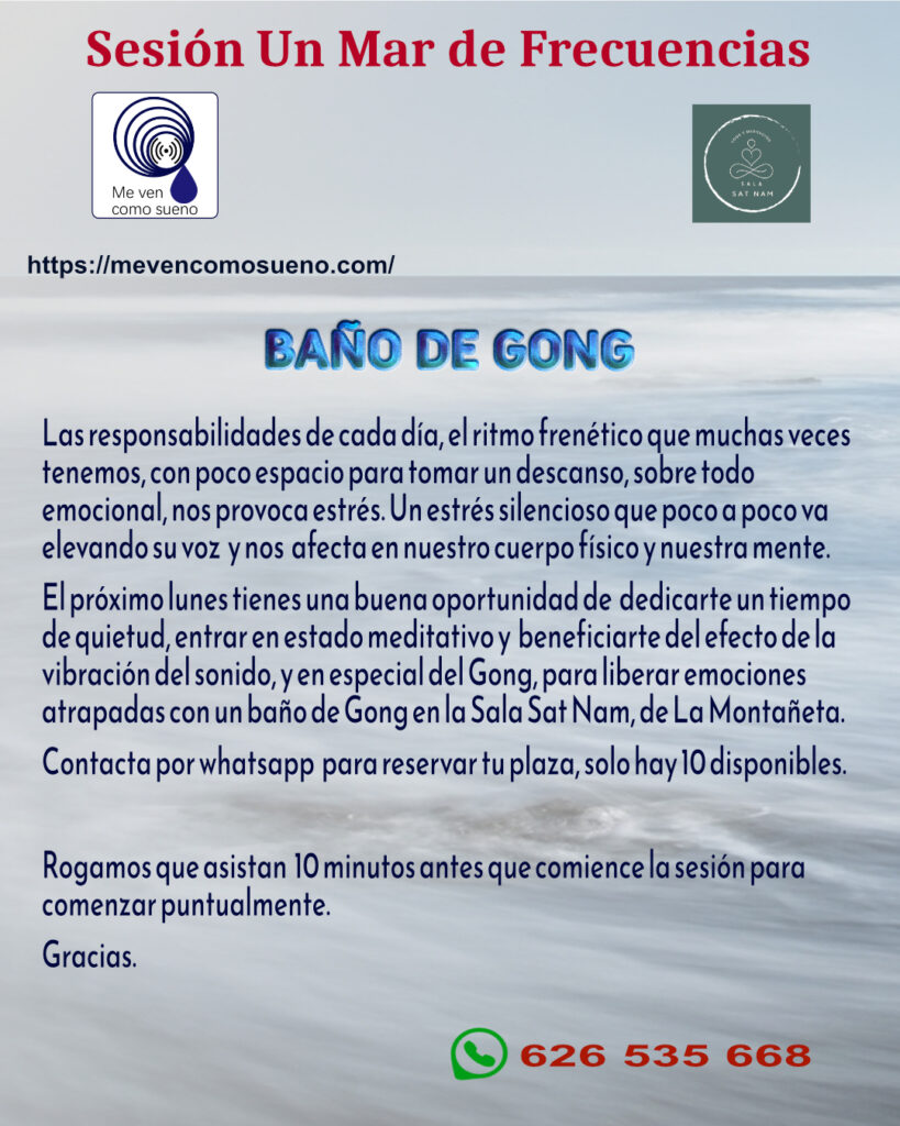 Siempre es un buen momento para darse un baño de Gong, soltar estrés, liberar emociones atrapadas, darse un tiempo para relajarse y sumergirse en las ondas del sonido del Gong en un mar de calma y bienestar. Es una buena oportunidad para darle al cuerpo un poco de cuidado y atención.